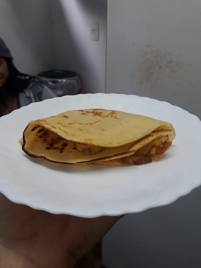 6. Se estiver com o auxílio da espátula vire o crepe e deixe por uns segudos até dourar.